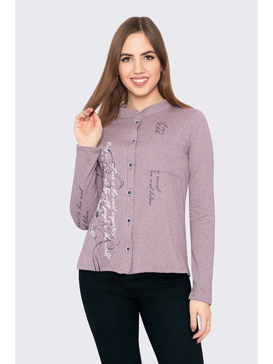 Блузка артикул: Фуфайка женская на пуговицах КАМЕЛИЯ, какао меланж от Style Margo - вид 1