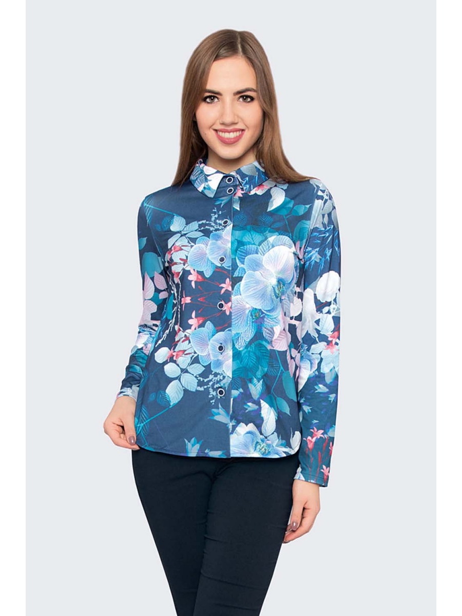 Блузка Фуфайка женская на пуговицах КАРАМЕЛЬ, темно-синий, Style Margo – купить с доставкой в Санкт-петербурге на peterburg.belpodium.ru