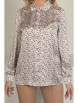 Роскошная рубашка прямого силуэта из атласа бело-серого цвета. Рубашка с отложным воротником и застежкой по планке переда. Втачные рукава обработаны манжетами. Аксессуары в комплект не входят.