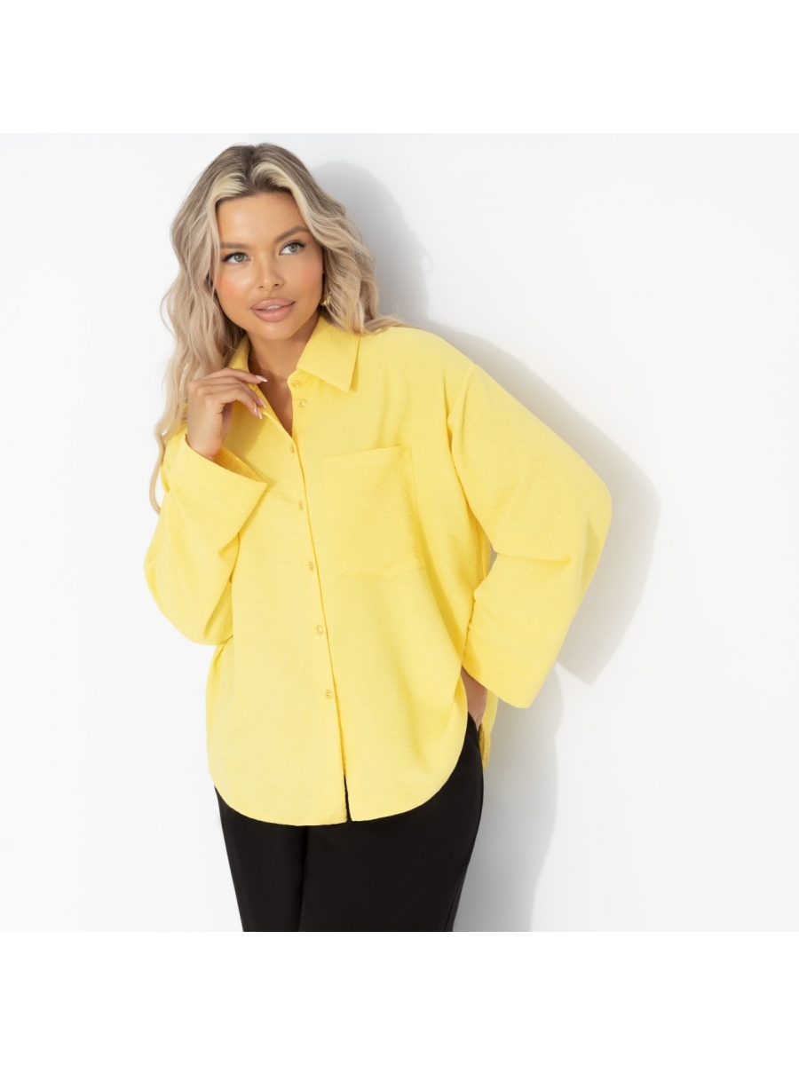 Вы – яркое солнце в офисе, наполненном шумом кондиционеров и серьезными лицами. Ваш мягкий навык – быть в ладу с коллегами, сглаживать острые углы и ходить на серьезные разговоры с директором в рубашке ЧАРУТТИ цвета спелого лимона. Диалог точно будет на позитивных вибрациях. Рубашка свободного кроя. Акцент в виде металлической цепи со стразами по спинке изделия. Есть треугольный вырез на спинке. Карман на передней стороне изделия.
