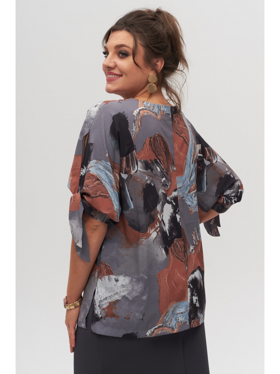 Блуза из легкой принтованной ткани. Прямой силуэт со цельно кроенным рукавом.