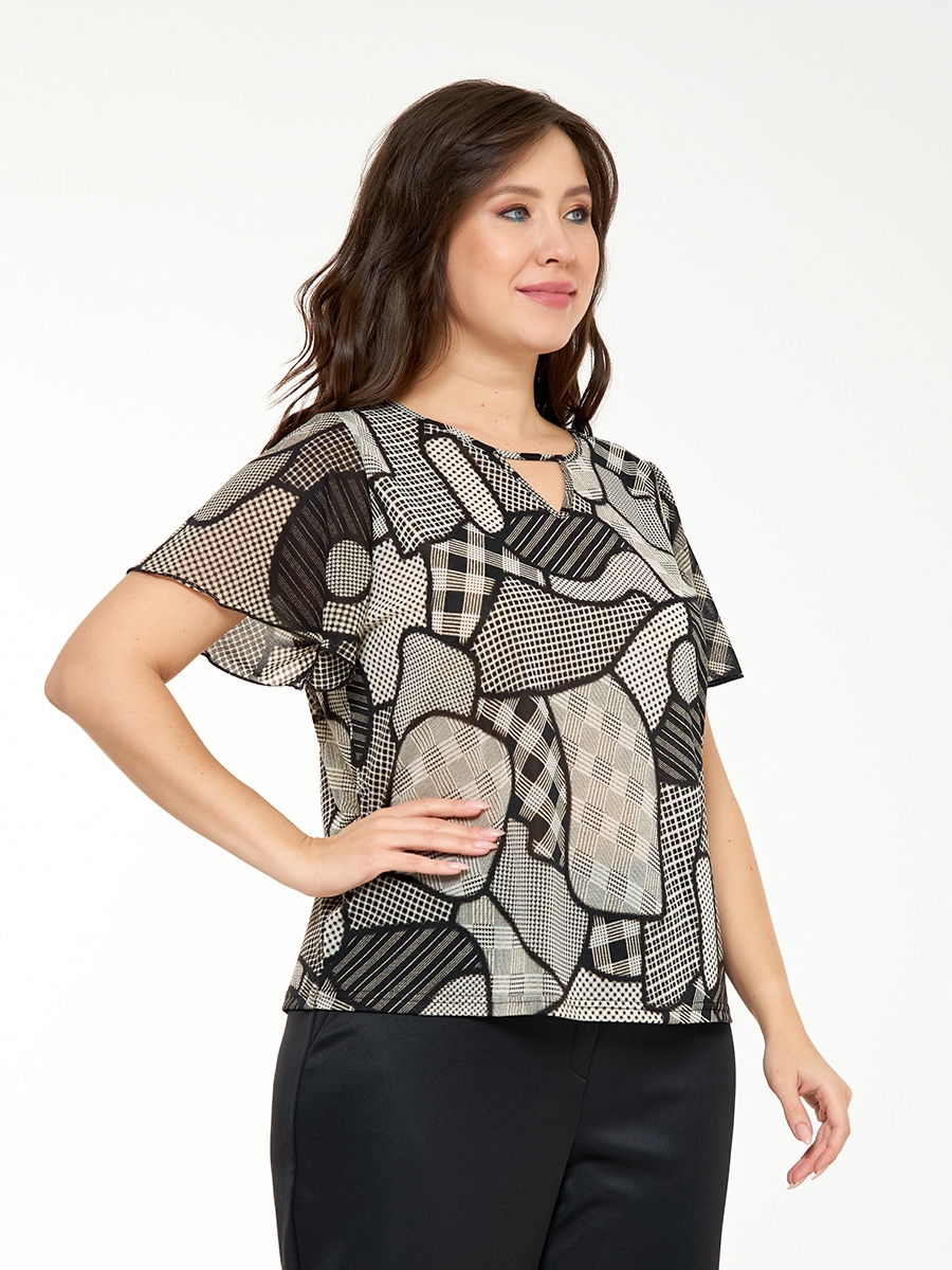 Женская блузка больших размеров, выполнена из полотна по типу сетка без вытачек.