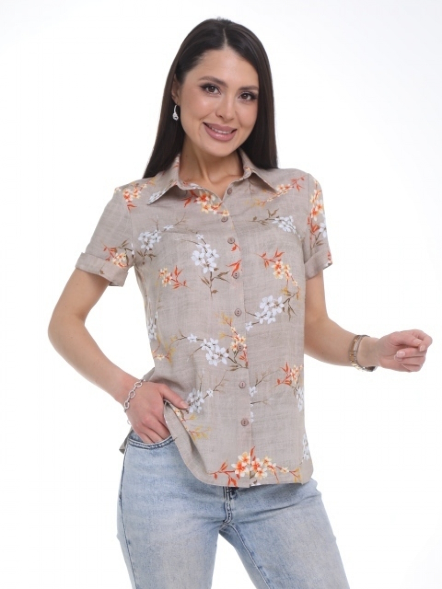 Возьмите в свой гардероб лучшую рубашку для самых запоминающихся приключений. Нежный принт превратит обычные прогулки в квест "Собрать ещё больше комплиментов". Рубашка с воротничком на стойке, спереди застёгивается на петли пуговицы. Немного приталенный силуэт. По спинке кокетка и небольшие вытачки. Рукава короткие с манжетом, который отворачивается наверх. Закругленные разрезы по бокам для удобства. Универсальная вещь, отлично сочетается с юбкой, брюками, джинсами.Модель выполнена из натуральной блузочной ткани высокого качества.