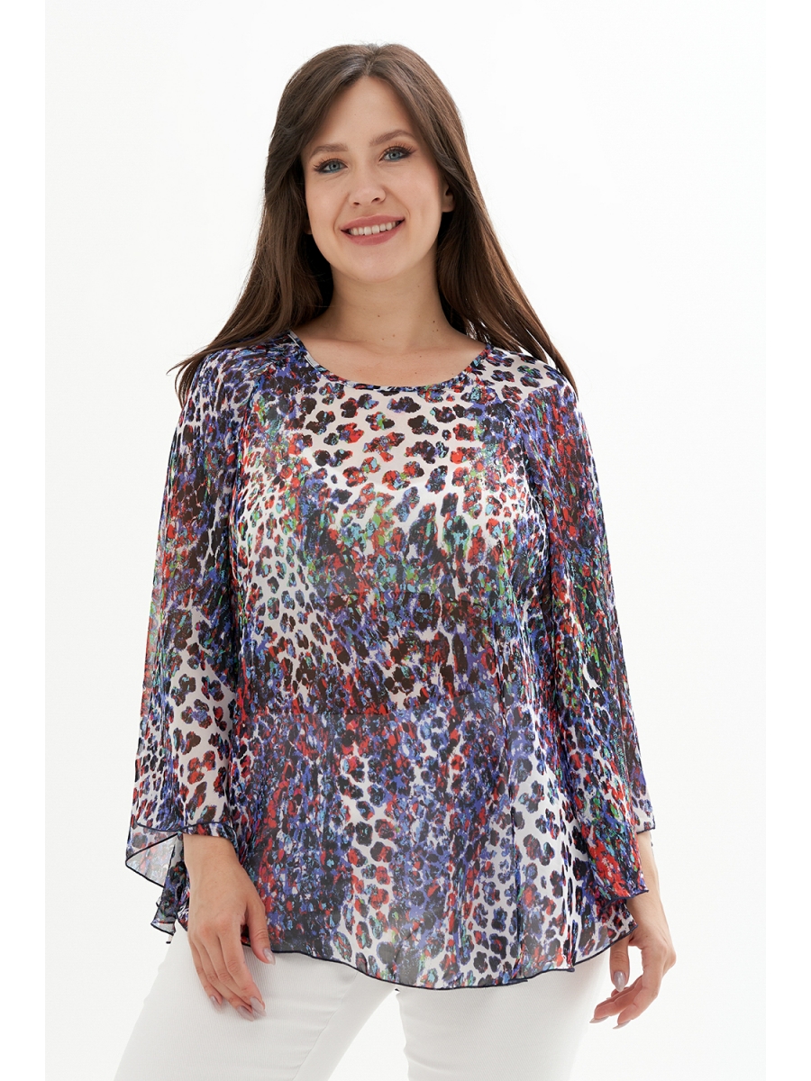 Повседневная блузка большого размера, выполнена из тонкого шифона с принтом.