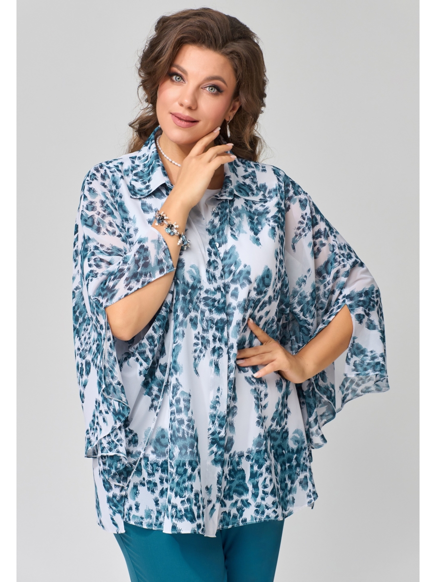 Блузка расширенная к низу. Полочка на потайную застежку на петли и пуговицы. Воротник рубашечного типа на стойке. Низ обработан швом в подгибку.