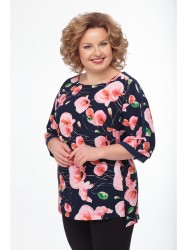 Блузон-туника для каждого дня! Удобная в носке за счёт прямого силуэта и оригинальная, благодаря конструктивным деталям по спущенной линии плеча и боковой вставке! Главной особенностью туники является спинка: под функциональной молнией в рамке из отделочной ткани скрывается шифоновая вставка-веер. Элегантный вырез горловины-лодочка. Ассиметричный низ с разрезами. Блузон представлен в ткани темно-синего цвета с цветочным принтом.