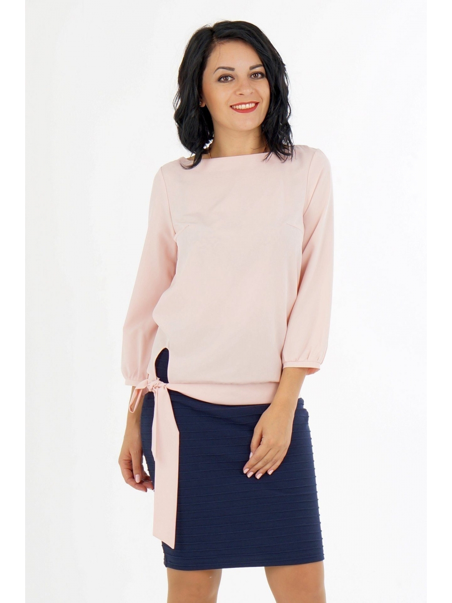 Красивая блуза. Вырез горловины лодочка. Рукав 48 см. на манжете. Низ на завязке. Без застёжки. Без подклада.