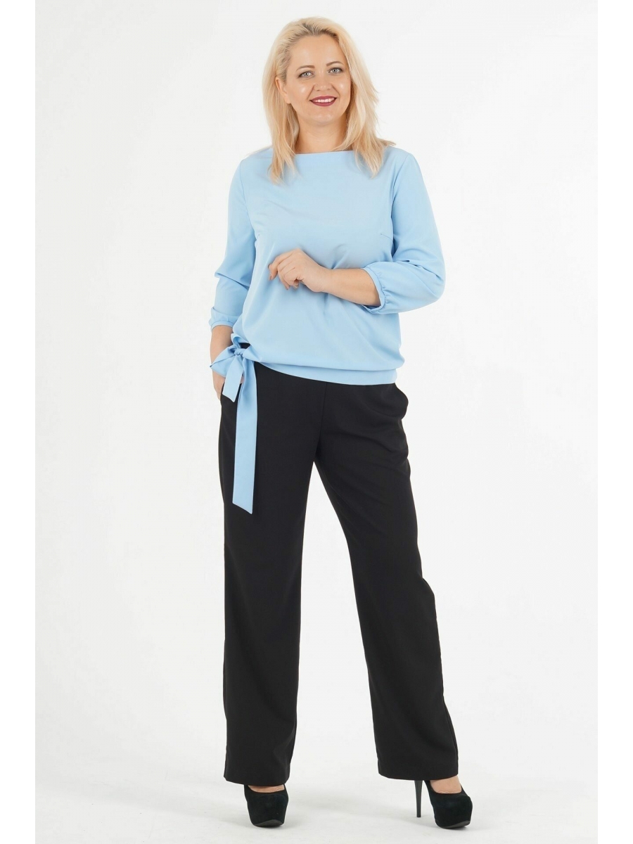Красивая блуза. Выполнена из эластичной блузочной ткани Ниагара. Вырез горловины лодочка. Рукав 3/4 49 см. на манжете. Низ на завязке. Без застёжки. Без подклада. Блуза хорошо смотрится с однотонными юбками и брюками. Блуза идеально подойдет для офиса и повседневной носки.