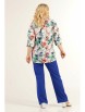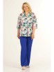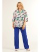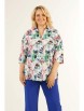 Летняя удлинённая блуза свободного силуэта. Выполнена из эластичной блузочной ткани. Расцветка цветы на белом. Рубашечный воротник и V-образный вырез. Рукава 3/4 длина 28 см. Без застёжки. Без подклада. Прекрасно подойдет для прогулок в жаркие дни и для повседневной носки. Рекомендуемая стирка при t не более 30. ДИ в 48 перед 75 см, спинка 84 см, в 50-52 р перед 76 см, спинка 85 см, в 54-56 р перед 77 см, спинка 86 см, в 58-60 р перед 78 см, спинка 87 см, в 62-64 р перед 79 см, спинка 88 см. Рост модели 168 см., размер изделия 52.