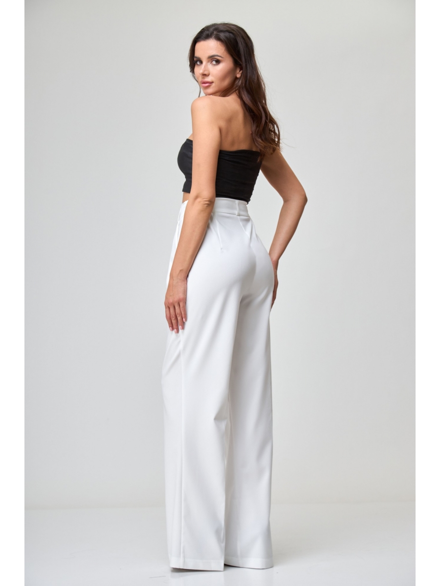 Брюки классического покроя с завышенной линией талии, с боковыми функциональными карманами по переду, с притачным поясом, в который вшиты две эластичные ленты по спинке .