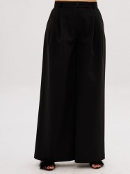 Элегантные брюки-палаццо с современным силуэтом. Модель отличается безупречным кроем с высокой посадкой, который подчеркивает талию и создает выразительный удлиненный контур. Широкие, ниспадающие мягкими складками штанины дарят образу воздушность и непринужденную пластику.
