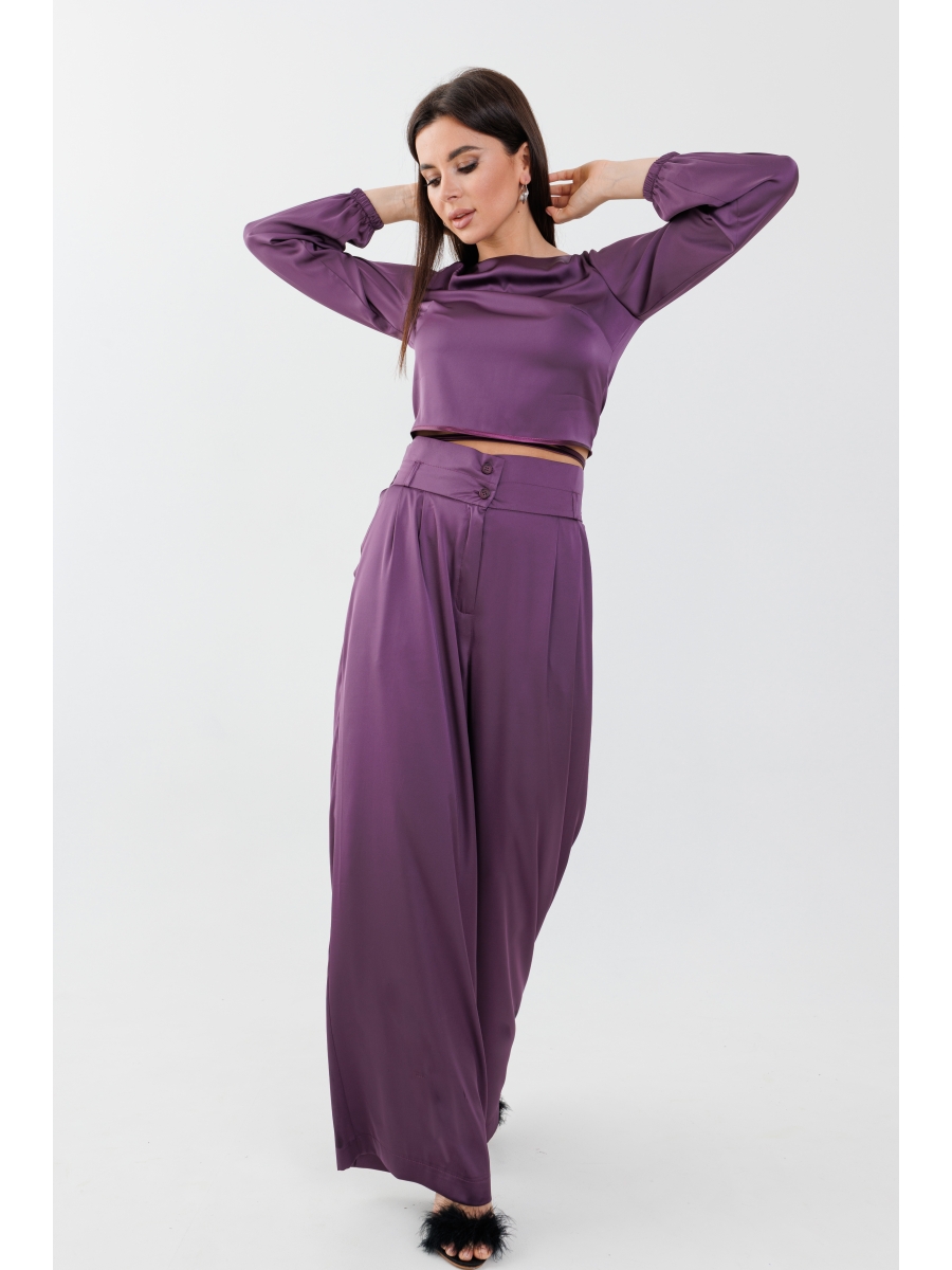 Брюки изготовлены из высококачественного армани шелка и имеют высокую посадку, что позволяет подчеркнуть фигуру и выглядеть элегантно. Они длинные и расширенные к низу, что создает легкий и свободный образ. В передней части брюк есть моделирующие защипы, которые подчеркнут вашу талию и создадут прекрасную силуэт. Кроме того, брюки имеют боковые карманы, что делает их функциональными и удобными для повседневного ношения.