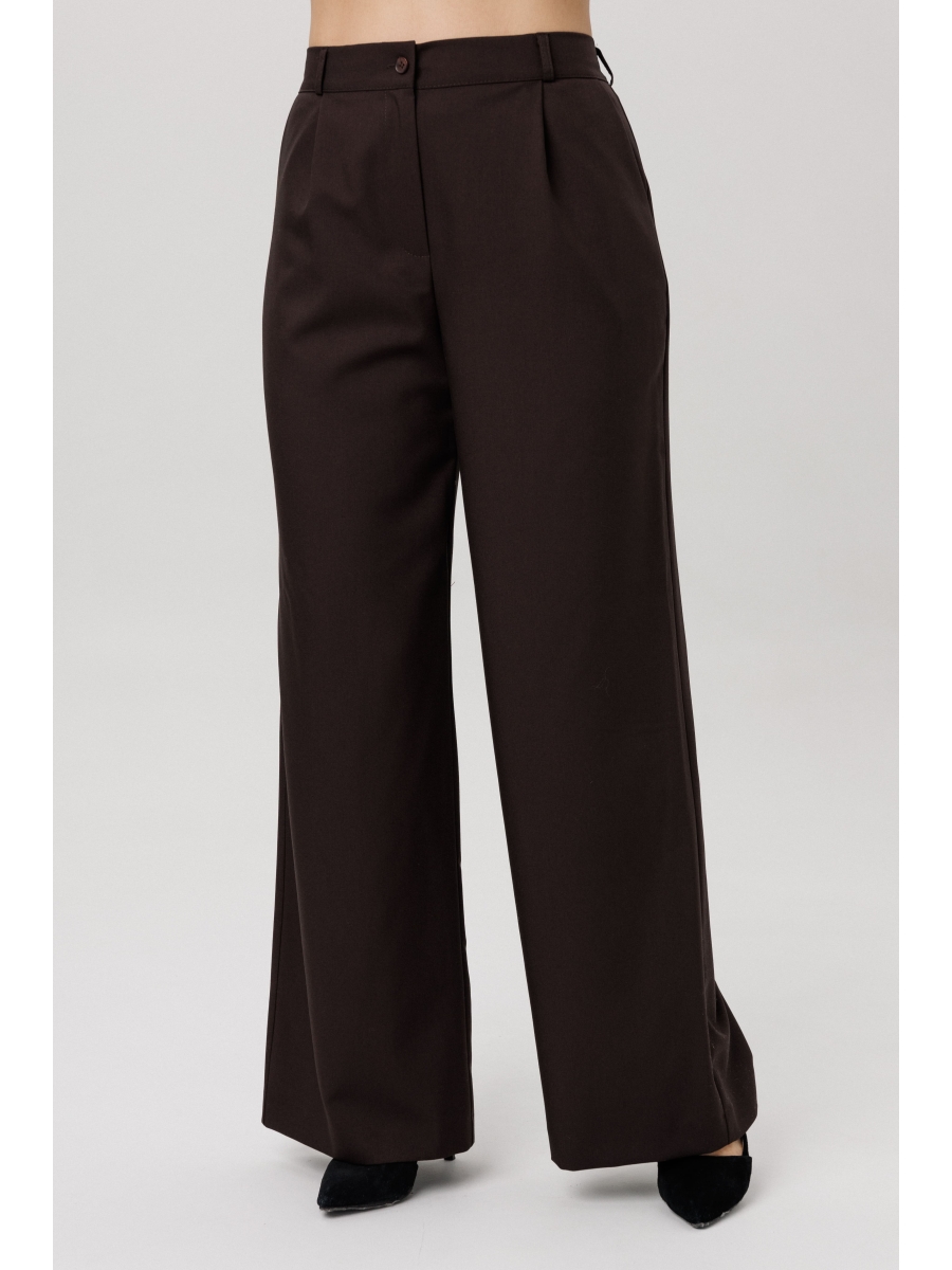 Идеальная посадка достигнута за счет эластичной резинки по спинке, которая мягко облегает фигуру, подчеркивая линию талии и обеспечивая комфорт в течение всего дня. Широкие штанины визуально удлиняют ноги, добавляя образу женственности и грации.