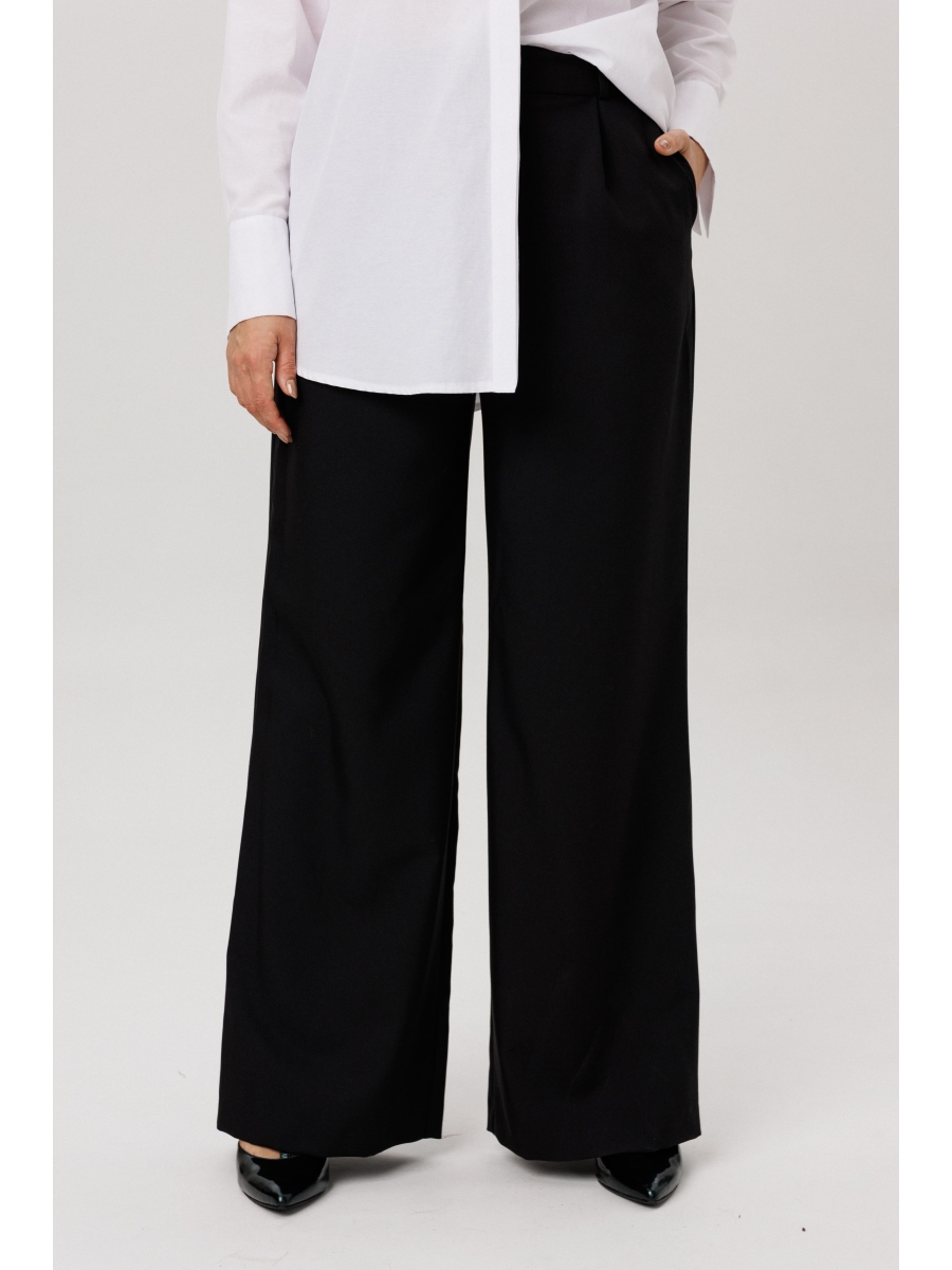 Широкие, струящиеся силуэты, мягко ниспадающие от талии, создают эффект роскошного движения с каждым шагом. Глубокий, насыщенный черный цвет – властный и невероятно притягательный – мгновенно приковывает взгляды, делая вас центром внимания в любой обстановке.
