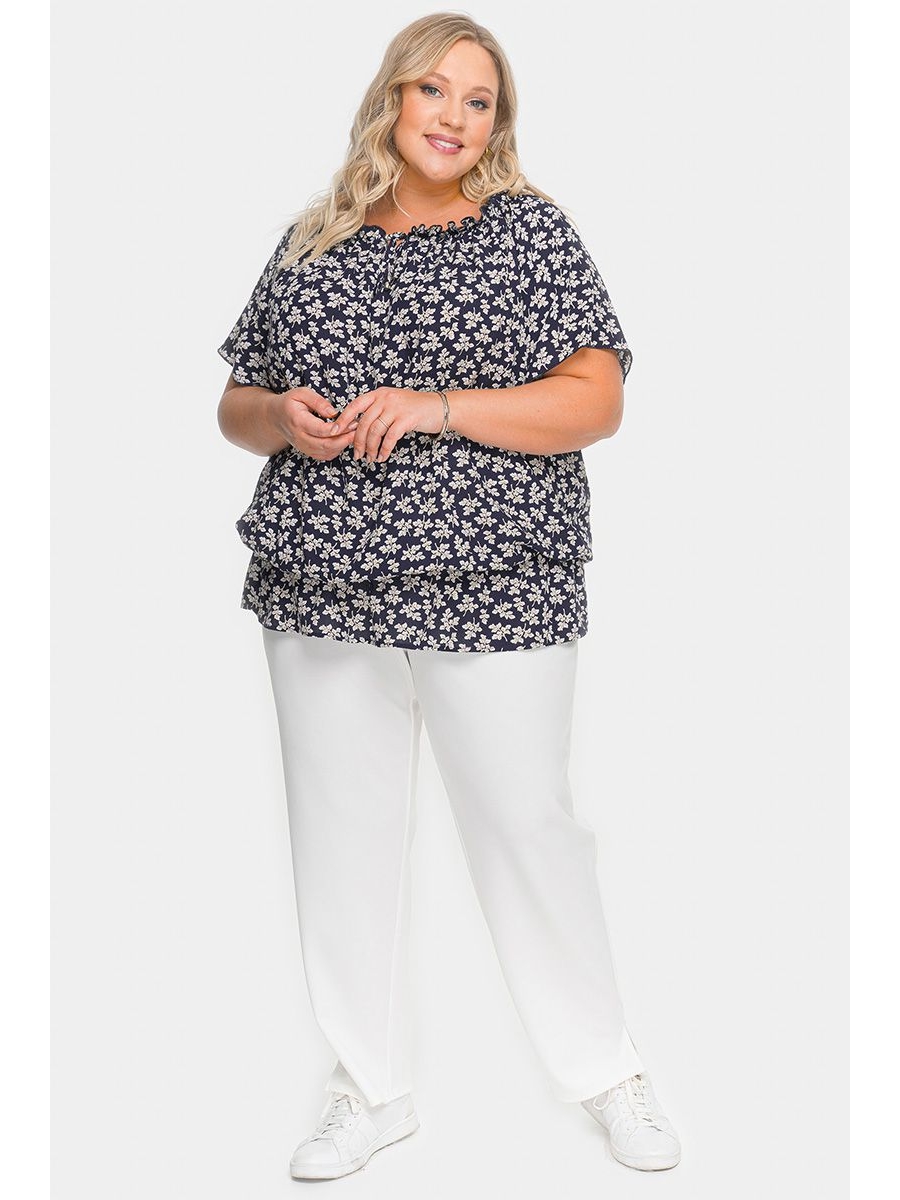 Мои размеры. Рост 160. ОТ 120. ОБ 150. Брюки приобрела 78 размера, немного широки в бедрах, но оставлю, так как ношу длинные туники, и целый день сидет на работе в тугой одежде тяжело. Длину придется отрезать на уровне где начинается разрез внизу. Постирала, цвет такой же белый ( у нас особенность воды белое может стать светло серым). Гладить не буду,, не мнуться. Покупкой довольна,рекомендую.