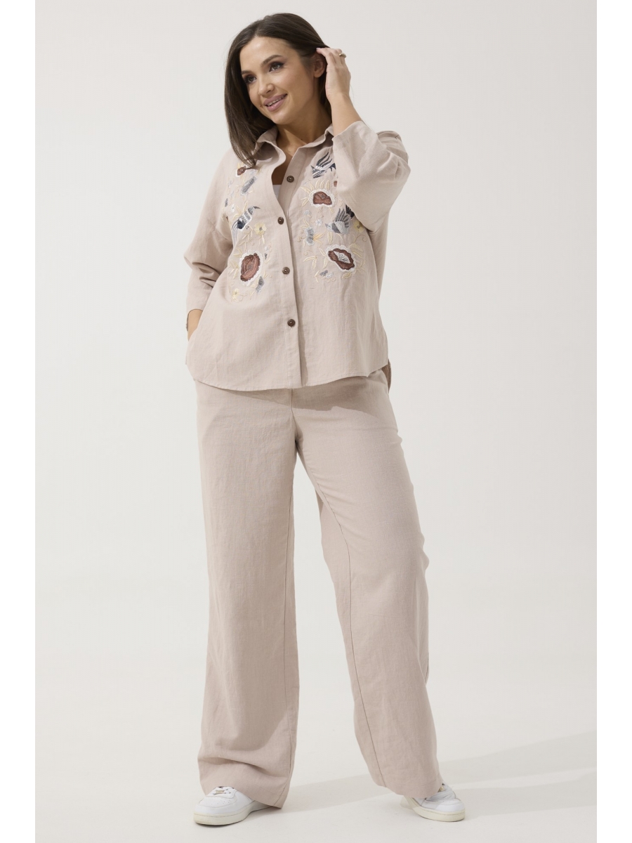 Брюки будут идеально смотреться с нашей рубашкой 1079 (на фото), также брюки можно купить в составе костюма 3066. Составят незаменимую часть вашего базового весенне-летнего гардероба.