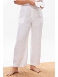 Укороченые широкие брюки Ma Сhérie из натуральной льняной ткани. Пояс притачной на резинке. Передняя половинка брюк с функциональными карманами с диагональным входом.
