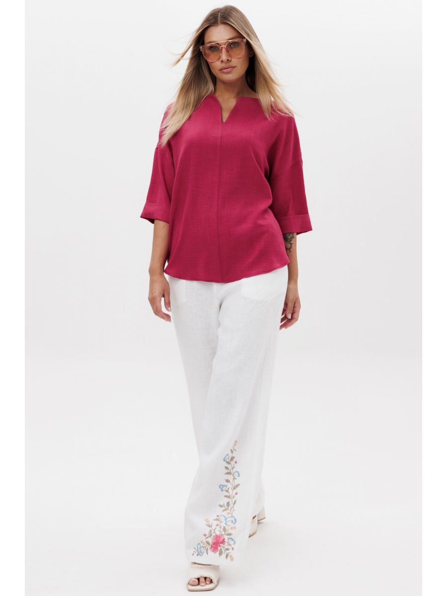 Льняные широкие брюки Ma Сhérie из натуральной ткани. Пояс притачной на резинке. Передняя половинка брюк с дизайнерской вышивкой и функциональными карманами с диагональным входом.
