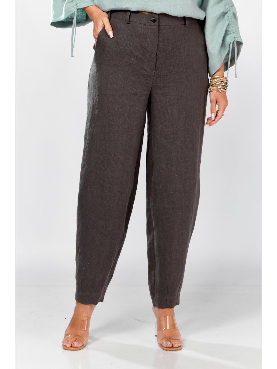 Оформить заказ →Брюки женские. Спереди застёжка на молнию и пуговицу. Сзади вытачки. В боковых швах карманы с отрезным бочком. Пояс по спинке на резинке, дополнен шлёвками. По низу брюк вытачки, создающие зауженный эффект.