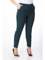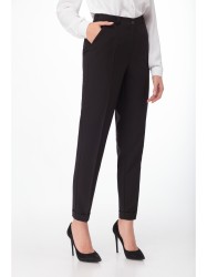 Брюки классического покроя с высокой посадкой, с боковыми карманами, притачным поясом, низ брюк с отворотами.