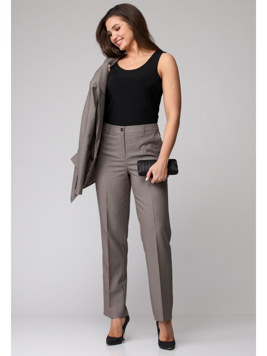 Оформить заказ →Брюки прямые, классические, с заутюженными стрелками, по переду обработаны карманы с отрезным бочком, застежка на тесьму-молнию и 1 пуговицу. На задних половинках обработаны вытачки и имитация карманов с листочкой, пояс в брюках притачной.
