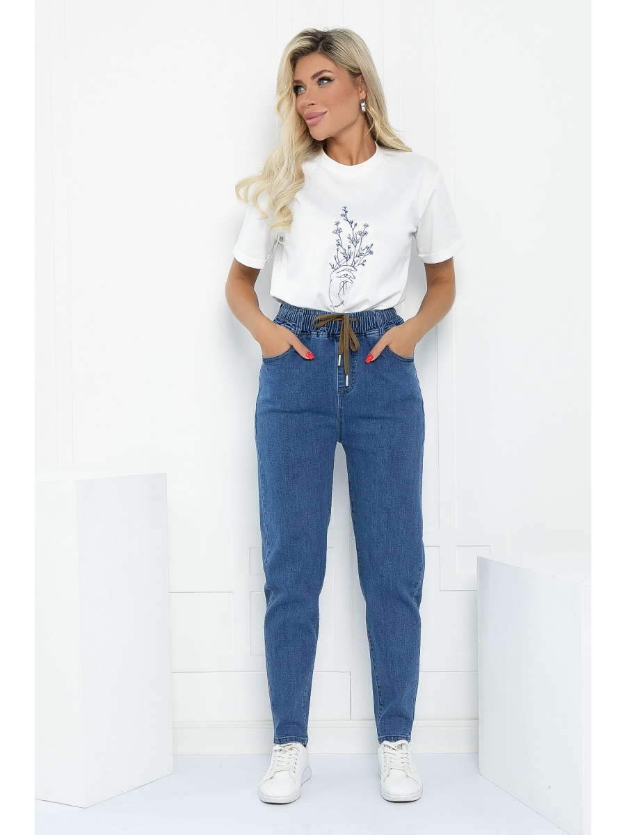 Женские джинсы mom — это идеальный вариант для создания стильных и удобных повседневных образов! Талия на резинке, дополнена акцентной шнуровкой. Кроме того, они оснащены карманами спереди и сзади, что обеспечивает их функциональность и практичность. Эти джинсы легко комбинируются с различными видами обуви и верхней одежды, что делает их универсальным элементом гардероба.