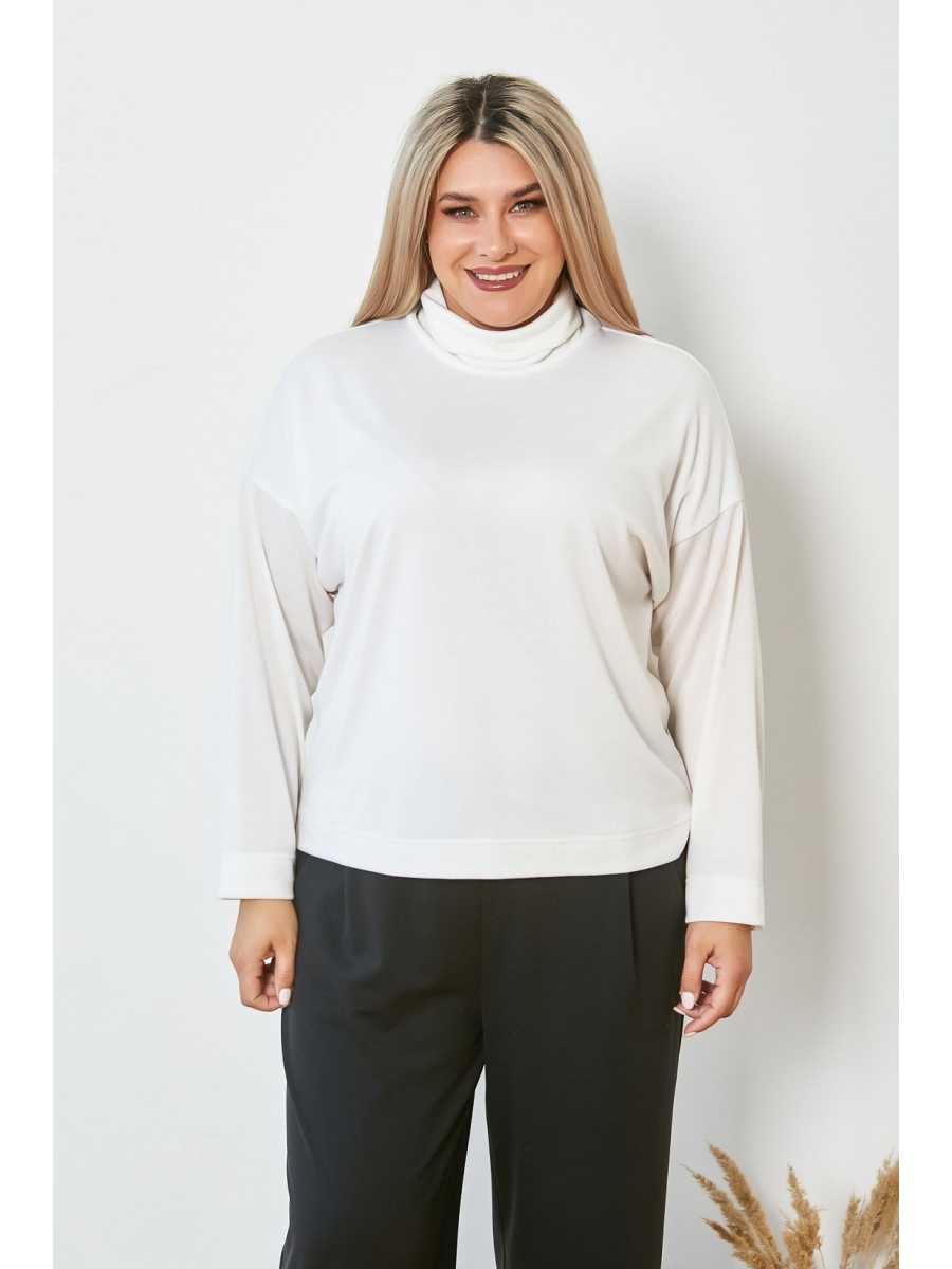 Комфортная водолазка прямого силуэта, длиной до линии бедер. Модель выполнена из мягкого трикотажного полотна. Перед на трикотажной подкладке. Круглый вырез горловины оформлен воротником - стойка. Рукава длинные втачные на спущенной линии плеча. Низ разноуровневый, по бокам разрезы. Модель прекрасно дополнит повседневный гардероб в прохладное время года.