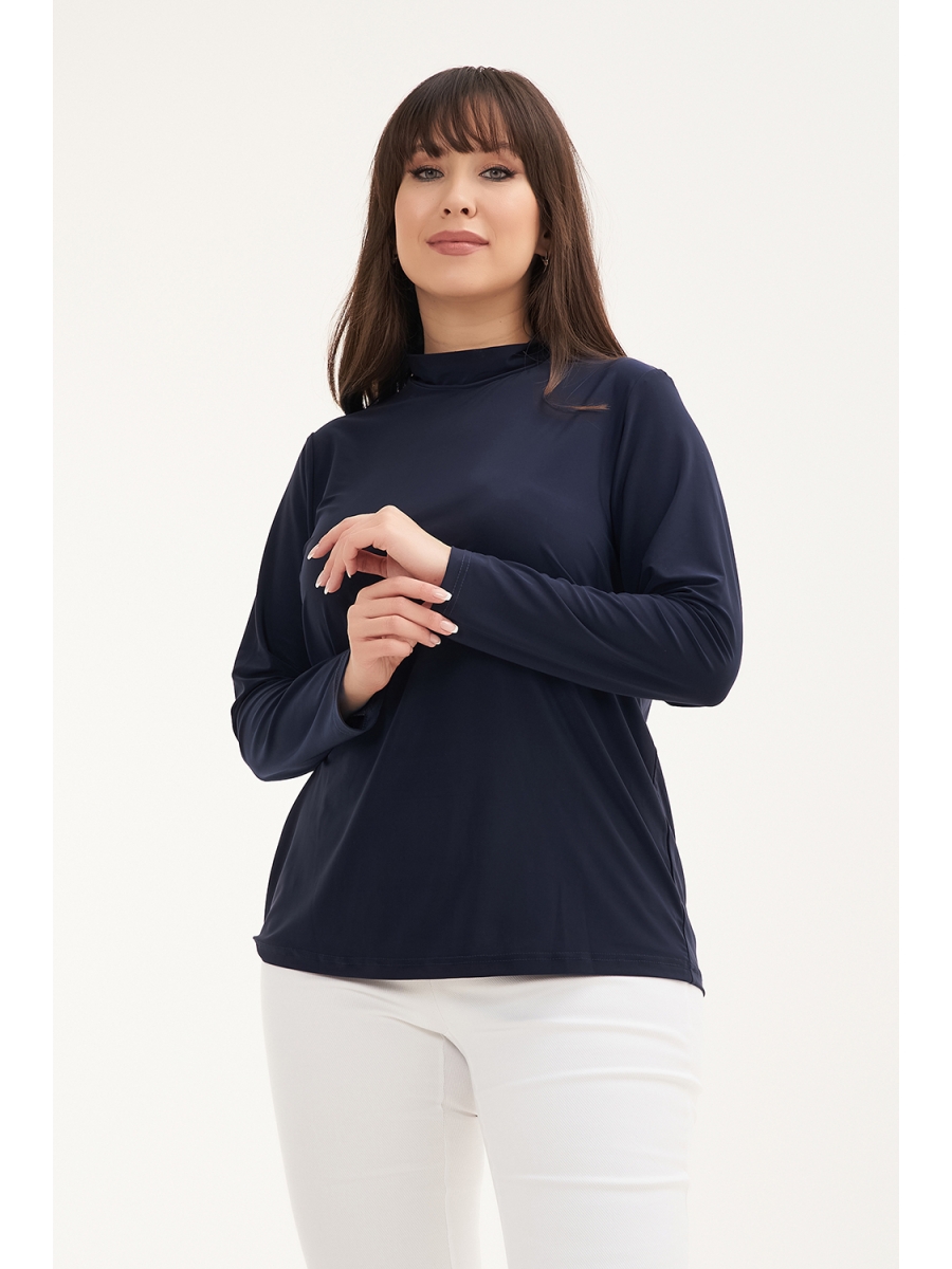 Женская повседневная водолазка прямого кроя, выполнена из полотна по типу масло. Горловина со стойкой.