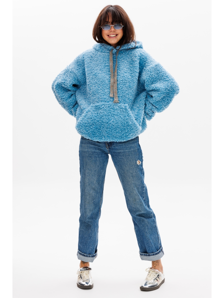 Стильное худи oversize из трикотажа «барашек». Худи с объемным капюшоном имеет приспущенный рукав и настрочной карман-кенгуру, манжеты и низ изделия присобраны на резинку. Худи, в котором будет тепло и уютно.
