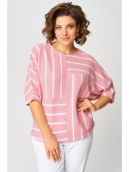 Джемпер женский из трикотажной вязаной ткани в полоску, свободного силуэта (летучая мышь). Перед и спинка джемпера обработаны декоративными подрезами. Рукав цельнокроеный. Вырез горловины круглый, обработан бейкой.