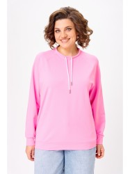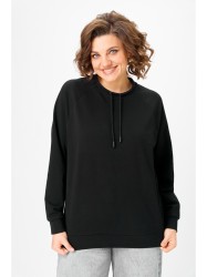 Джемпер женский из трикотажной хлопковой ткани (двунитка). Рукав реглан. Низ рукава обработан притачной манжетой. Низ изделия оформлен притачным поясом. На спинке настрочен декоративный элемент. Вырез горловины круглый, обработан бейкой со шнуром.
