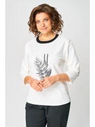 Джемпер женский из трикотажной хлопковой ткани (двунитка). По переду расположен принт. Рукав прямой втачной. Рукав 3/4. Вырез горловины круглый, обработан довязом.