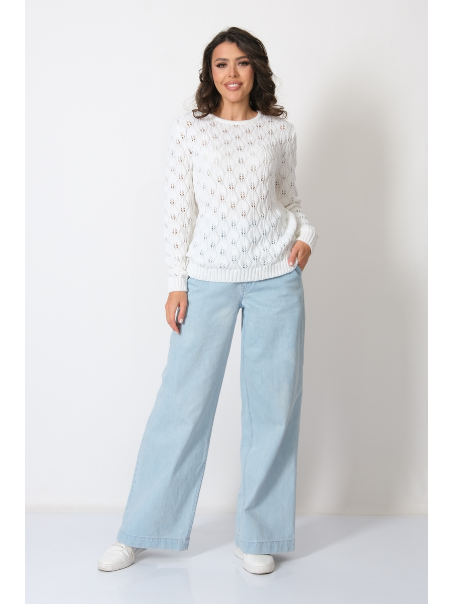 Полушерстяной джемпер с круглой горловиной. Рукава втачные длинные с эластичной манжетой. Ажурная вязка.