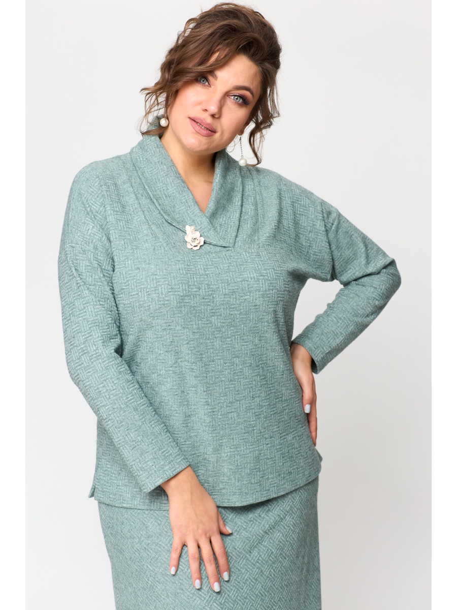 Оформить заказ →Уютный джемпер из мягкого «структурного» трикотажного полотна свободного силуэта. Воротник с глубоким запахом и складкой переходит в планку на груди. Рукав зауженный длинный. По бокам невысокие разрезы. На воротнике декоративная брошь.