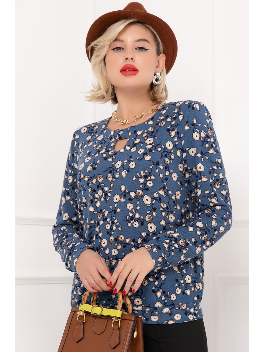 Джемпер Бертольда с нежным принтом – разнообразит гардероб и добавит новых красок в Ваш стиль! Благодаря длинному рукаву, стильный джемпер из мягкого трикотажа, обеспечит комфорт и подарит тепло в течение всего дня. Округлый вырез и свободный крой подчеркнут утончённость фигуры. Джемпер отлично сочетается с различными элементами гардероба: брюки, юбка и может быть использован, как в офис, так и на прогулку с семьёй или друзьями!