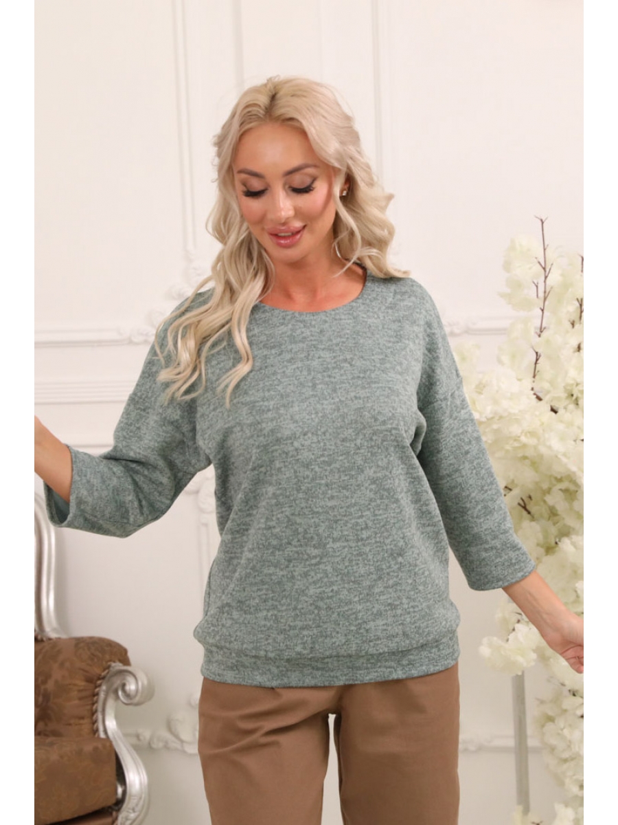 Очаровательный джемпер свободного силуэта из трикотажного полотна серого цвета. Круглый вырез изделия обработан внутренней обтачкой. Джемпер со спущенной линией проймы и втачными рукавами. По низу изделия манжет. Длина изделия по спинке от плечевого шва до низа изделия — 65 см. Рост модели - 170 см.