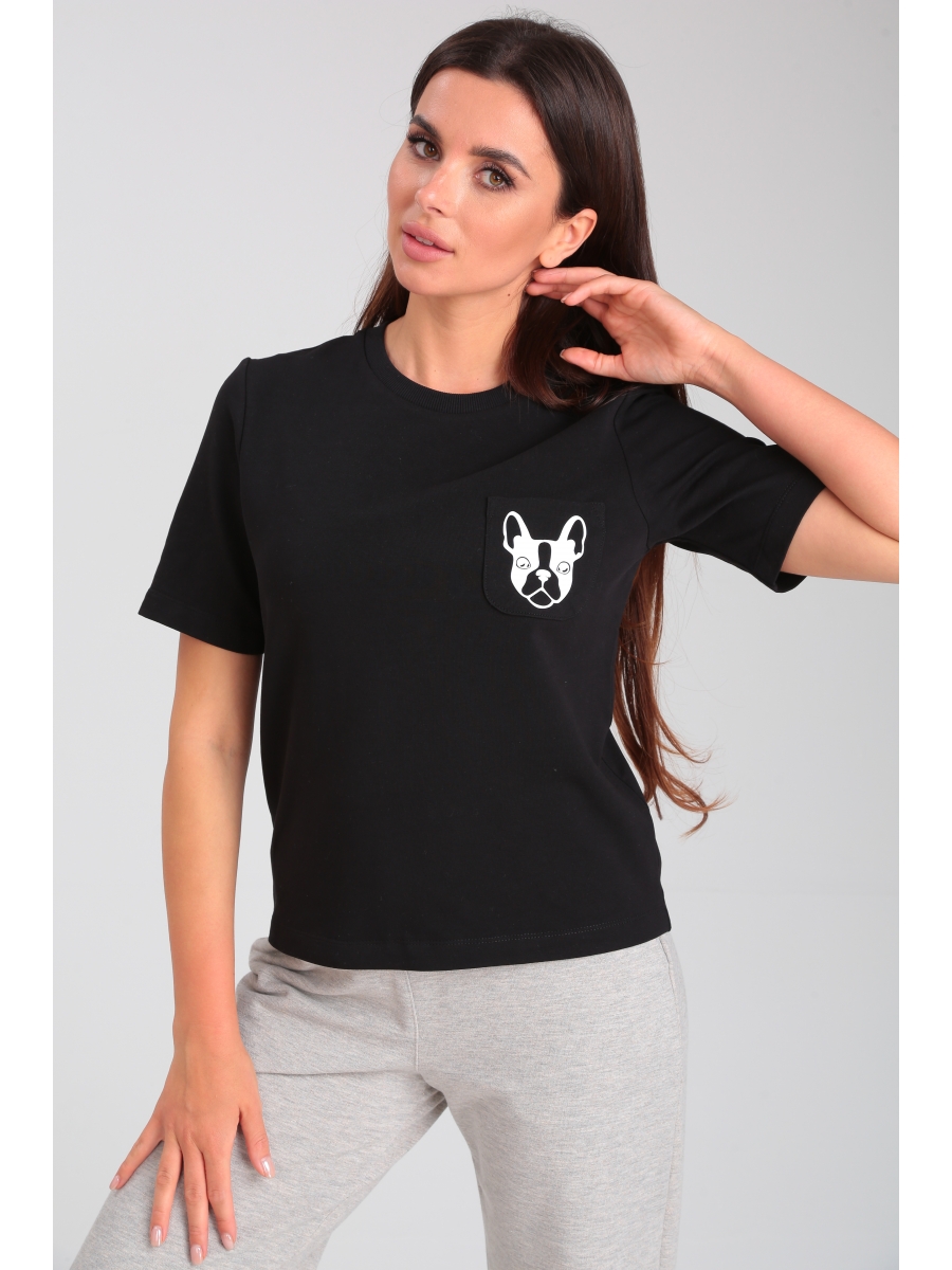 Стильная укороченная женская футболка. Изделие выполнено из натурального хлопкового футера 2-х нитка, благодаря чему очень приятна к телу. Прямой свободный силуэт, укороченный рукав и длина обеспечат комфортную носку, а наличие нагрудного кармана с необычным принтом добавит футболке практичности и изысканности.
