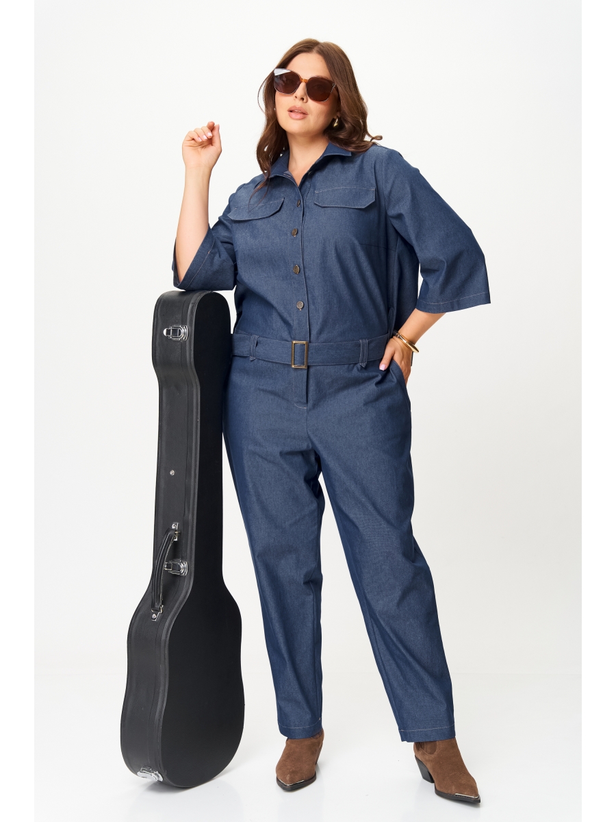 Джинсовый комбинезон для истинных модниц. Стильный и оригинальный в своем исполнении. Отрезной по линии талии, с отлетной спинкой, что придает образу легкость и эффектность. Съемный пояс, который позволяет регулировать высоту посадки и степень прилегания.