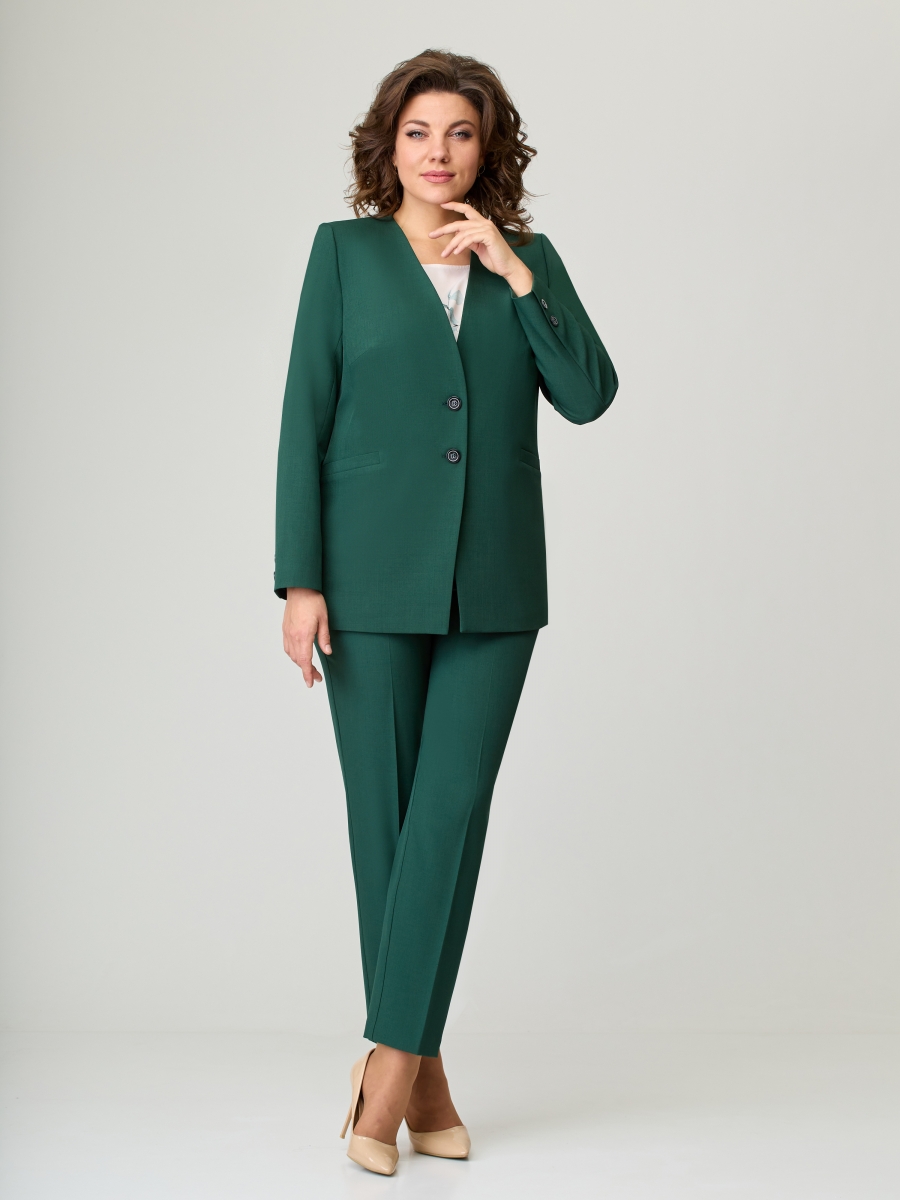 Жакет на подкладке с прорезными функциональными карманами по переду и застежкой на 2-е петли и пуговицы. Рукав втачной двухшовный со шлицей декорированной пуговицами.