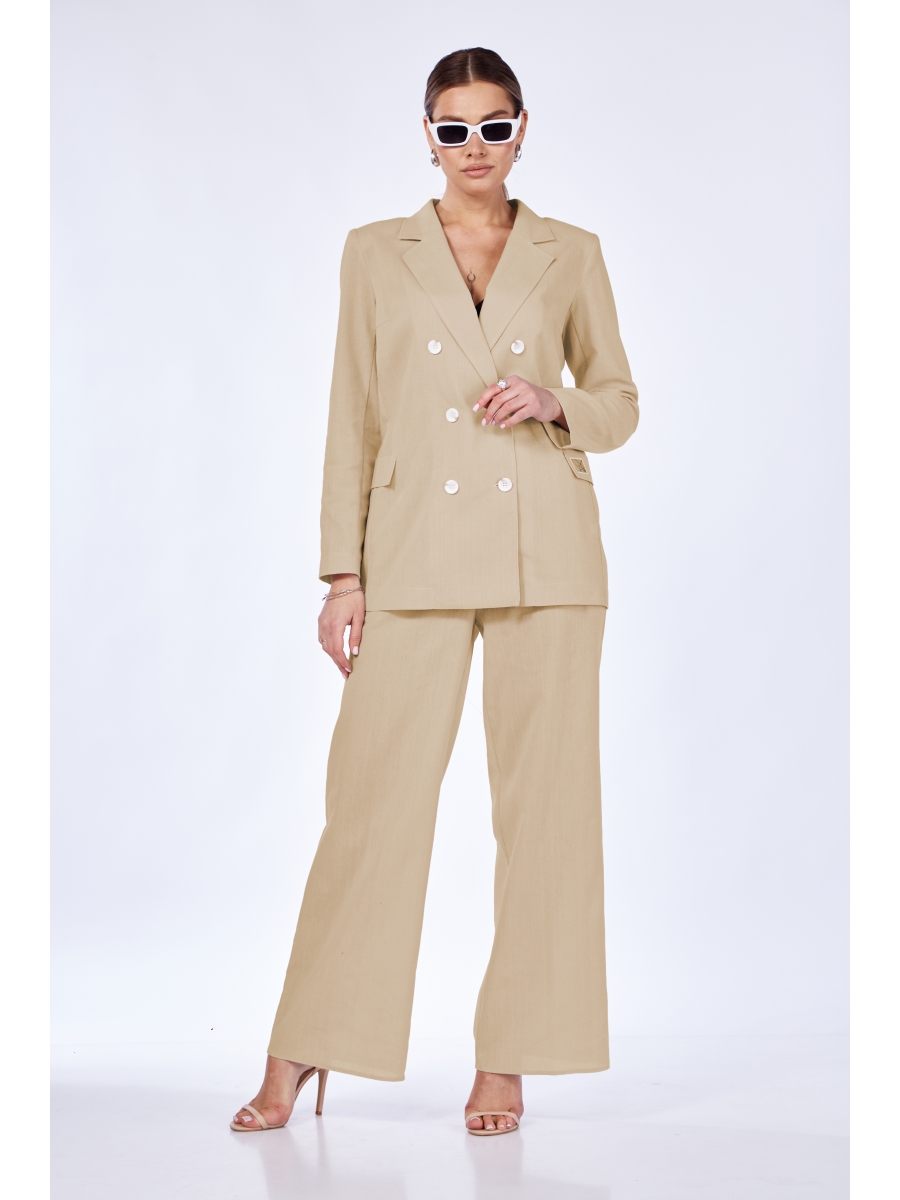Жакет полуприлегающего силуэта: бочок с выточкой по полочеке, по спинке средний шов. Застежка двухбортная, карман клапан "обманка" с снашивкой. Рукав двухшовный.