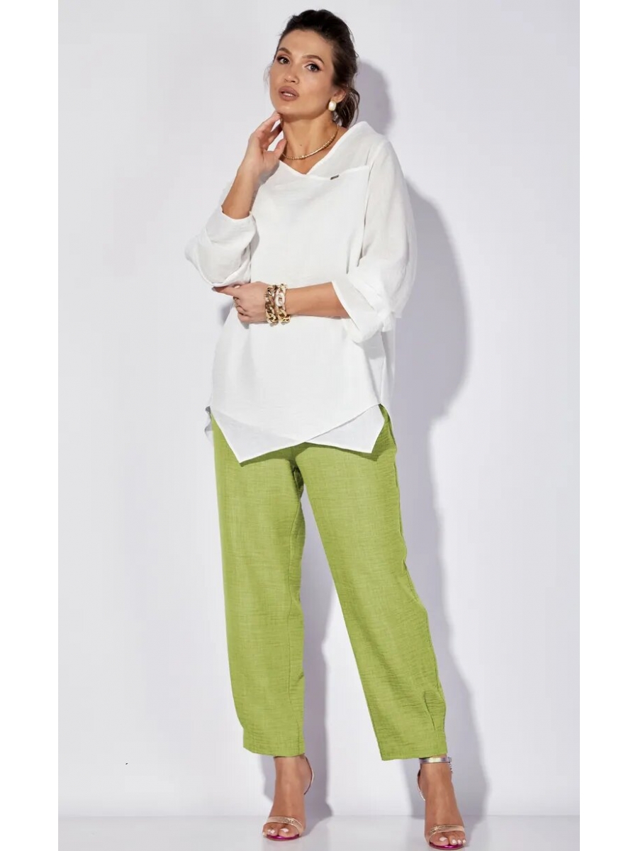 Брючный костюм 1101.1 белый/фисташковый, Anastasia – купить с доставкой в Санкт-петербурге на peterburg.belpodium.ru