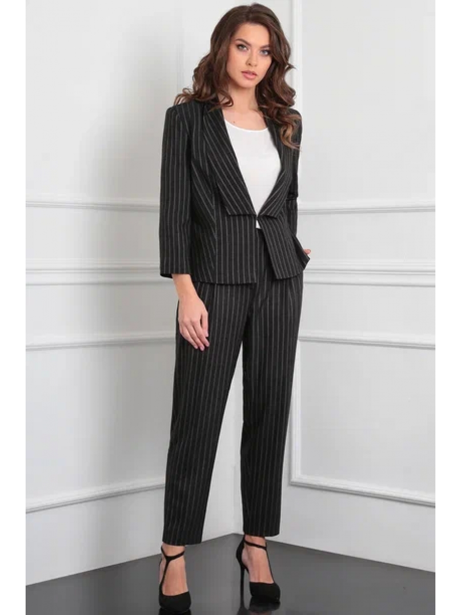 Жакет женский прямого силуэта на подкладке, без карманов. Воротник шалевого типа с фигурными концами, рукав втачной укороченный. Застежка центральная встык застегивающаяся на потайной крючок.
