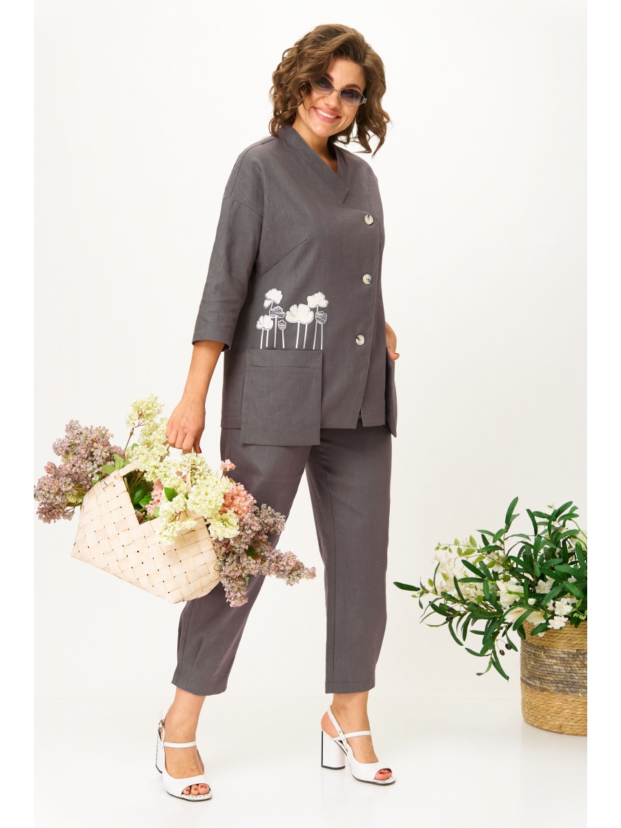 Брючный костюм 1202 серо-коричневый, Anastasia – купить с доставкой в Санкт-петербурге на peterburg.belpodium.ru