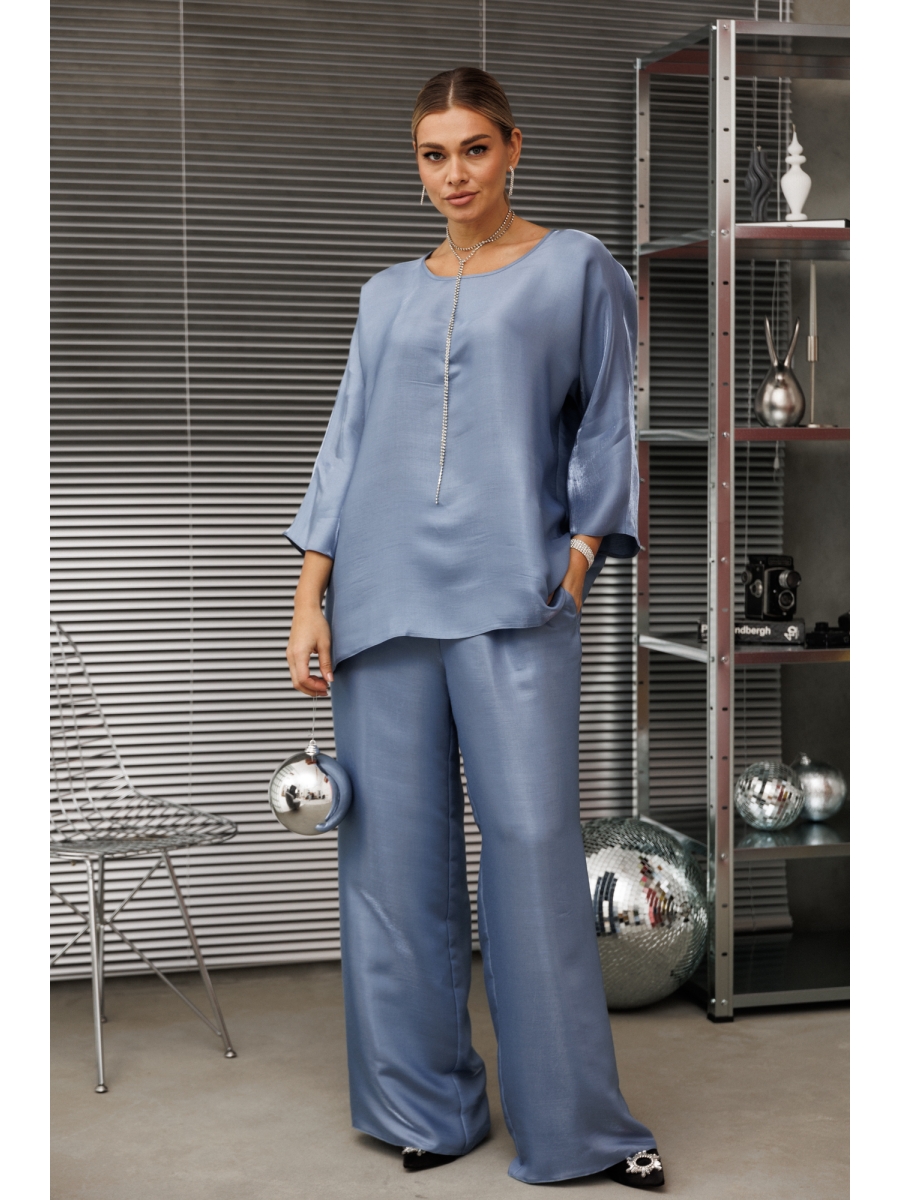 Костюм женский 2-х предметный (блузка, брюки) из легкой вискозной ткани с блеском.
