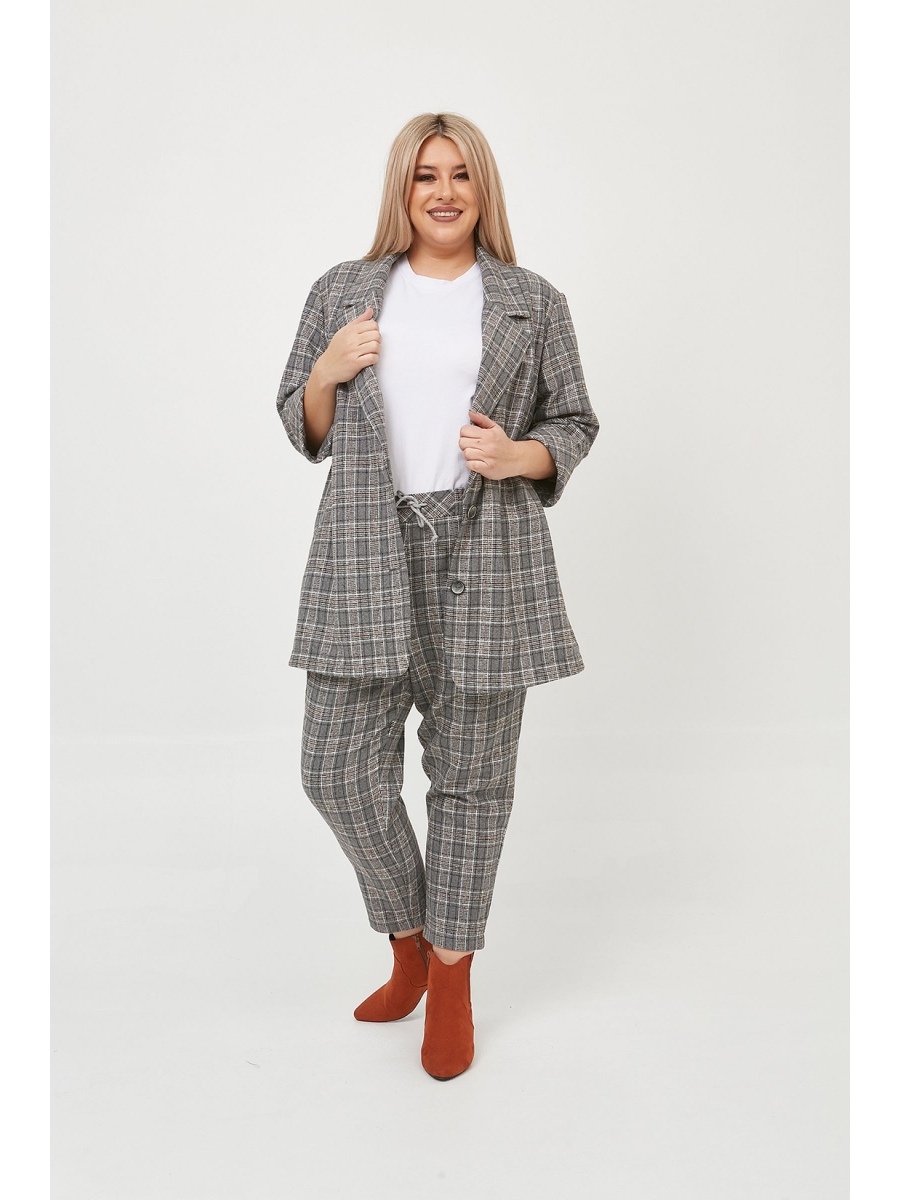 Стильный костюм состоящий из жакета и брюк, из костюмной ткани в клетку.
