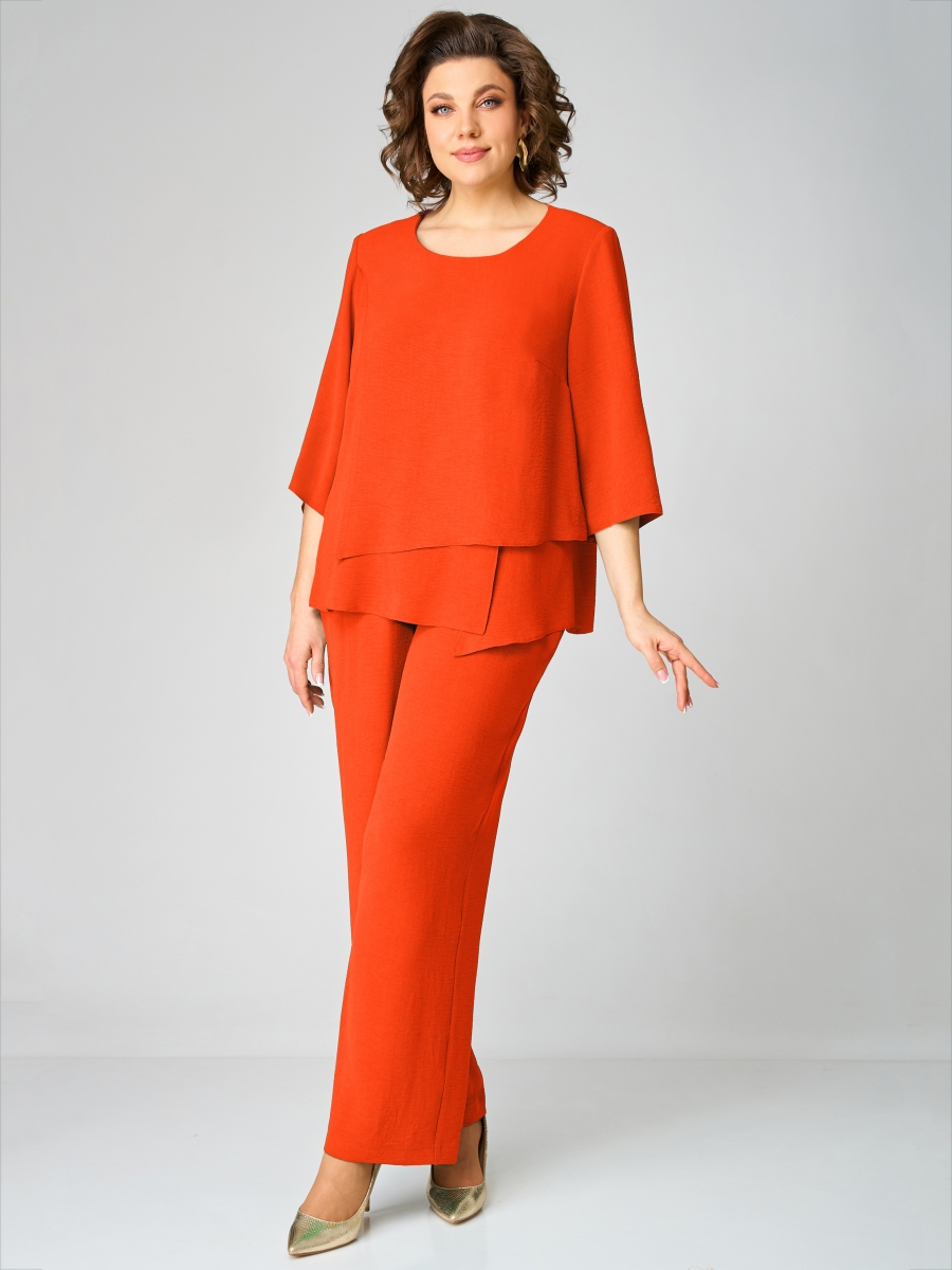 Элегантный женский комплект прямого силуэта из легкой струящейся ткани.