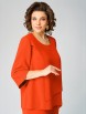 Туника прямого силуэта. Перед состоит из нижней детали и с боковым подрезом и шлицей с левой стороны, нагрудные вытачки идут от плечевого среза. Верхняя деталь переда ассиметричной формы. Спинка со средним швом и застежкой на потайную тесьму-молнию. Округлый вырез горловины. Рукав втачной одношовный.