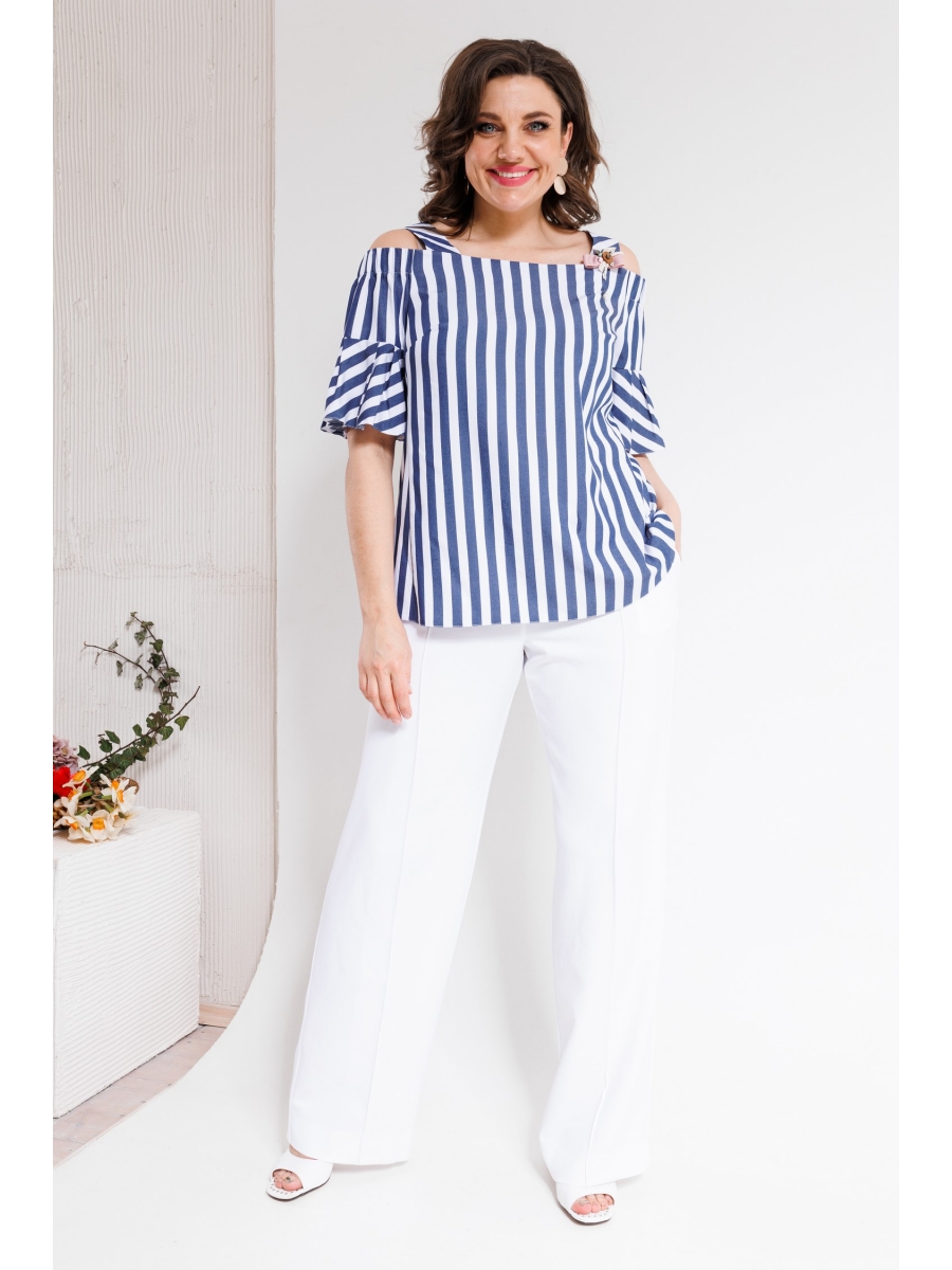 Модный, стильный комплект, состоящий из блузки и брюк.