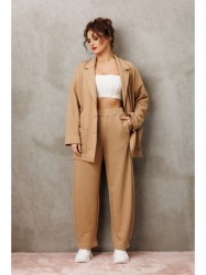 Жакет со спущенным плечом. Воротник пиджачного типа, по полочке идут накладные карманы. Жакет без подкладки, мягкий и легкий. Края борта воротника, низов и карманов не обработаны. Застежка на петли и пуговицы. Выполнен в крое Oversize свободной формы и посадкой по фигуре. Если хотите силуэтную посадку, выбирайте на размер меньше. Если хотите посадку свободнее - заказывайте свой размер. Стильный и трендовый жакет подойдет для высоких и невысоких женщин.