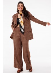 Брюки прямого кроя идеально дополняют жакет, создавая гармоничный силуэт. Они длинные и оснащены боковыми карманами для удобства. Застежка гульфик с молнией и пояс на пуговицу обеспечивают надежную посадку.